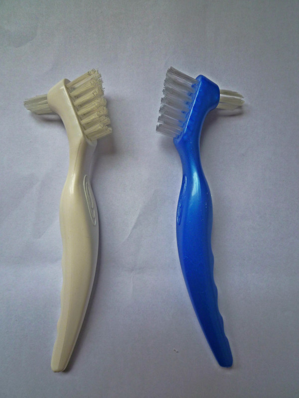 Harter & glatter Griff für einfaches Reinigen von Zahnersatz, zwei Borstengrößen für gründliche Reinigung
